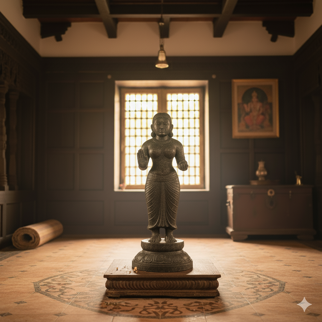Overwhelmed with devotion, the family built a sanctum for the goddess, performed Prānapratiṣṭhā, and began daily mūrti pūjā — rituals that breathed life into her idol and established her as the protecting deity of their home.
